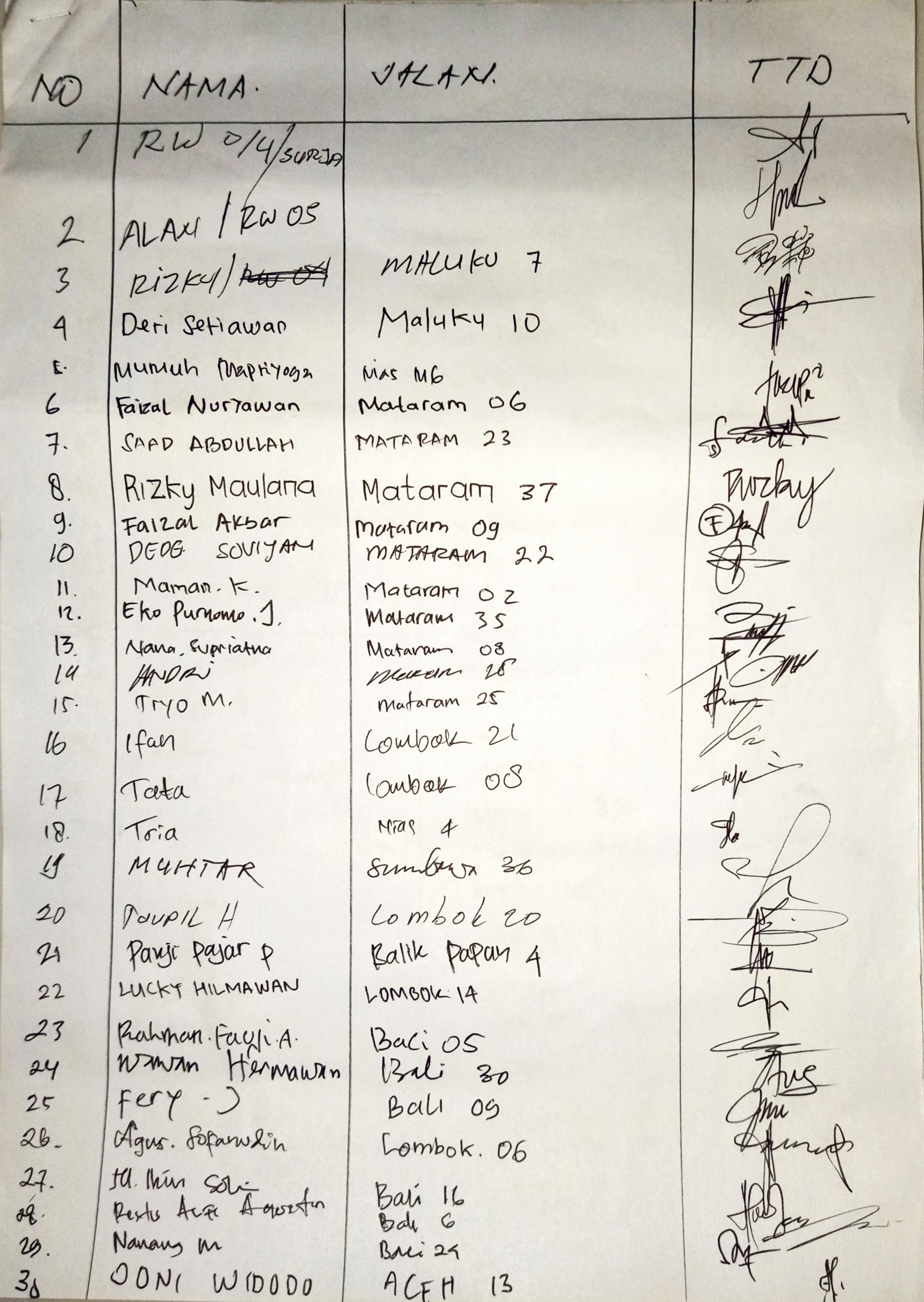 Alhamdulillah pada malam tersebut hadir 60 orang perwakilan dari tiap jalan dan akhirnya terpilihlah Ketua RT 05 yang baru atas nama Bapak Joni Widodo (alamat Jl. Aceh No. 13). Susunan Pengurus dapat dilihat disini.