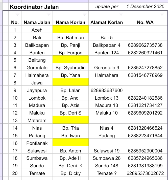 Garis Besar Tugas Korlan (Koordinator Jalan) *) :
